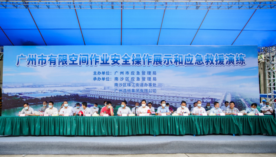 在公司领导的高度重视下,通过新产品分厂、办公室、人力资源部、采购部、生产部、物流管理部、园区发展部等部门的积极配合,广州市有限空间作业安全操作展示和应急救援演练于8月26日在公司成功举办。市应急管理局党委书记、局长黄彪、南沙区常务副区长谢明、凯发天生一触即发集团副总经理谭思马和公司党委书记、董事长周耘出席了本次活动,各区应急管理局和珠江街主要负责人、市有限空间作业重点企业代表、凯发天生一触即发集团安监部和各板块安全责任人及公司AB类部门共160余人现场观摩演练。